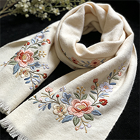 - Embroidery: Elegant/durable for logos/small art; upscale small-batch embroidered luxury custom scarves.