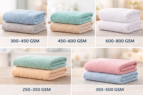 | Hand/face towels | 300–450 GSM | light, quick-dry for daily use |