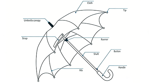 | Ribs/Frame | Steel, Aluminum Alloy, Fiberglass | Steel: Stable but heavier; Aluminum: Lightweight, rust-proof; Fiberglass: Flexible wind resistance | Golf, Automatic, Long-Handle Umbrellas |